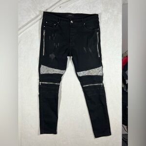 AMIRI 36W 30L Mx2 Bandana Knee Black Denim Jeans Distressed Authentic Denim C25