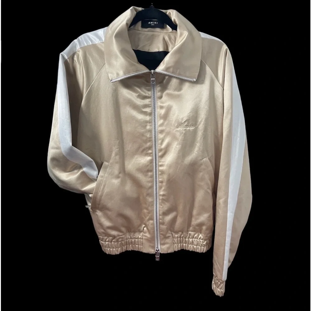 AMIRI track jacket in tan/white. 2 exterior zipper pockets, 1 interior zipper pocket. EUC. Size large.