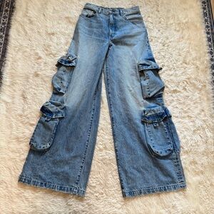 AMIRI Baggy Mid- Rise Wide Leg Cargo Jeans - Size Small