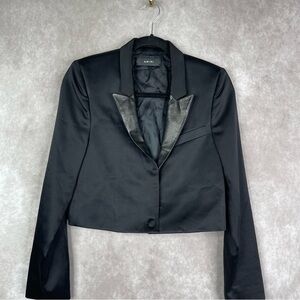 AMIRI Black Crop Satin Silk Leather Tuxedo Blazer In Black Women's Size 40 US S