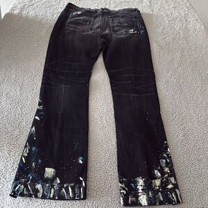 AMIRI Black Flare Wide Leg Jeans with Embellishments Paint size 38