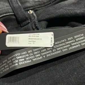 These AMIRI skinny jeans in black feature a striking design with distressed details revealing blue accents underneath. The intentional rips and tears create a bold contrast, adding a modern edge to your style. Perfect for those seeking a fashionable and unique look. Size 32-36