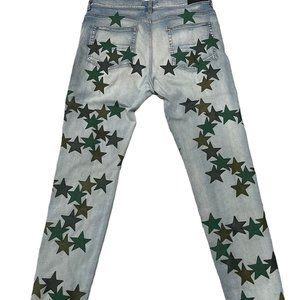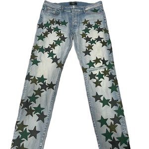 AMIRI JEANS LIMITED EDITION GREEN LEATHER STARS SIZE (38)