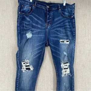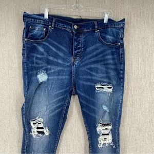 AMIRI Jeans 38X29 Blue MX1 Skinny Denim Distressed Button Fly Whisker Knee Pads