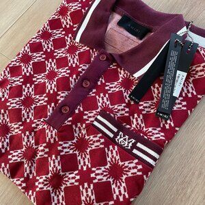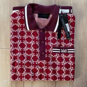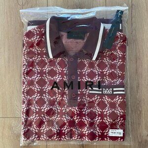 AMIRI MEN NEW CASUAL POLO SHIRT LARGE SIZE RED COLOR