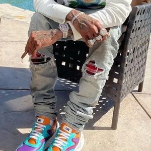 AMIRI MX1 Red Plaid Patch Underlay Distressed Jeans Size 31 New With Tags!