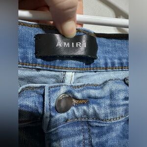 AMIRI Paint Splatter Distressed Blue Denim Jeans Ripped Men's Size 34 MSRP $1090. Check out my other Amiri Jeans listing.