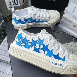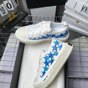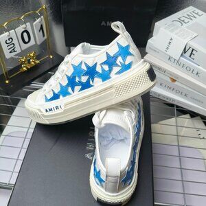 These casual shoes feature a simple white base, accented with a bright blue star pattern, creating a stylish and fashionable look. The upper design balances style with comfort, making them an easy-to-use complement for any style. Whether for everyday outings or trendy outfits, they'll enhance any look and are a great choice for fashion lovers.