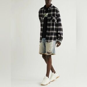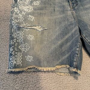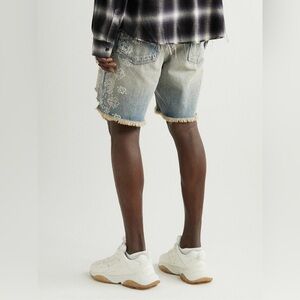 AMIRI - Straight-Leg Paisley-Print Distressed Denim Shorts - Blue Size 40 NWOT