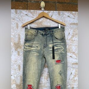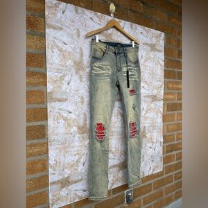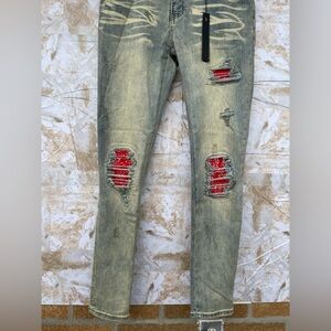 Skinny antique yellowing red bandana patches style new with tags . Ripped faded style , skinny