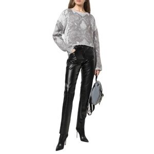 AMIRI cropped cashmere blend gray python print long sleeve pullover sweater
