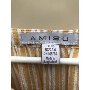 AMISU Size 6 with Pockets Yellow and White Belted Dress