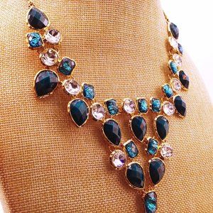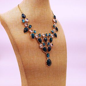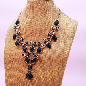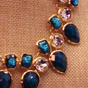 AMITRA SINGH rhinestone teal statement collar necklace faceted teardrop bezel drop pendant