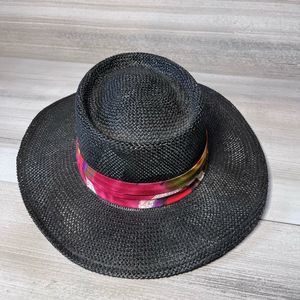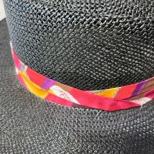 AMJ Pacific Co Black Straw hat Small/ Med with Colorful Hat Band