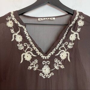 AML Brown Long Sleeve Sheer Top
