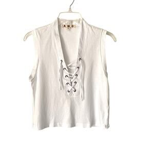 AMO Aviva White Lace Up Front Tank Top size XS in excellent condition. Measurements laying flat chest 17 inches across and length 19 inches long