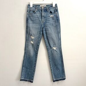 AMO Babe Cropped Jeans in Forget Me Not Blue Women’s Size 27 Distressed