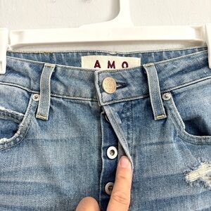 AMO Babe Jeans, women’s size 27! Medium wash, hidden button fly, slightly distressed.