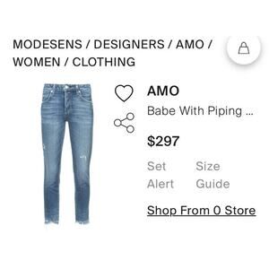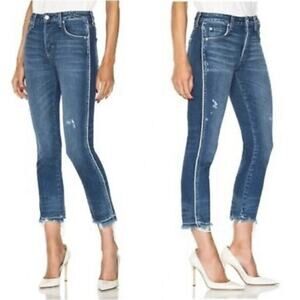 AMO Babe Old School Jeans • 27• with Piping Blue Raw Hem $298.