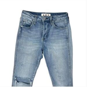 Step into effortless style with these AMO "Babe" Trippin High-Rise Cropped Skinny Jeans in size 26. Known for their premium fabrics and perfect fit, AMO jeans are made in Los Angeles and designed to flatter with a touch of laid-back edge.