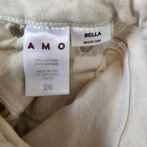 AMO Bella White Oak Ankle Jeans 26 Off White Straight Leg Distressed USA Made