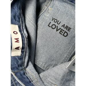 AMO BLUE DENIM HIGH RISE PATCH POCKET JEAN SHORTS SIZE 24