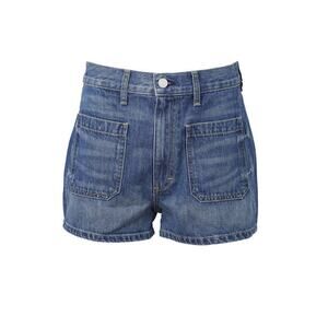 AMO Blue Denim High Rise Patch Pocket Jean Shorts Size 24