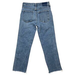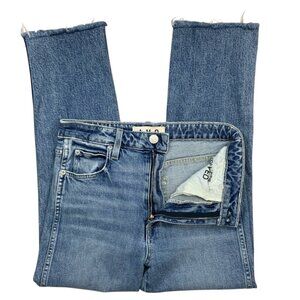 AMO Chloe Crop Jean 28 Kismet Blue Raw Hem Slim Straight Leg High Rise Zip Fly
