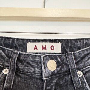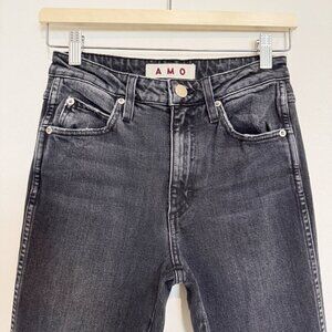 AMO Denim High Rise Stix Cropped Jeans Frayed Anthropologie Washed Black 26