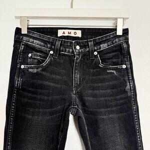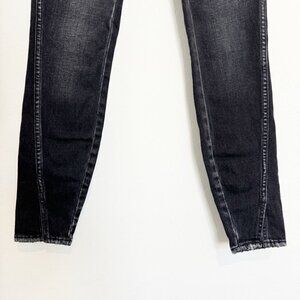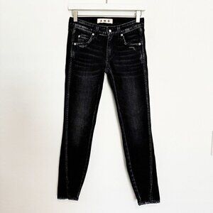 AMO Denim Twist Ink Skinny Cropped Jeans Black Contemporary Casual Split Hem 24