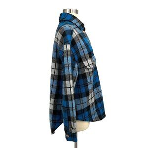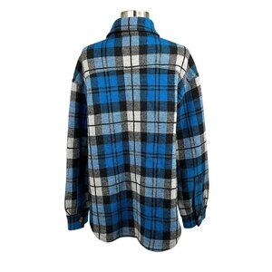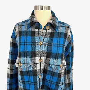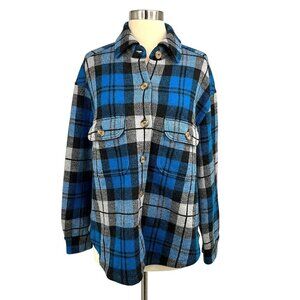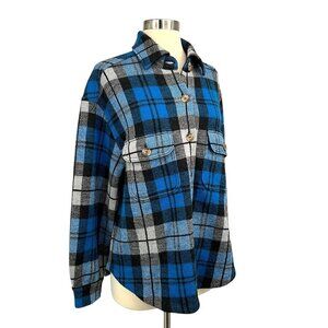 AMO Denim Wool Shirt Jacket Blue Plaid Size S Long Sleeve Pockets Women's