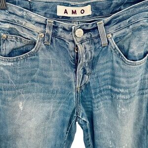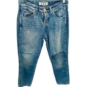 AMO Distressed Button Fly Jeans Light Medium Wash