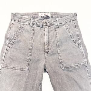 AMO Easy Army Trouser Washed Black Raw Hem Gray Denim Jeans Size 28