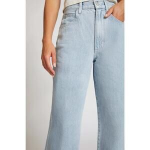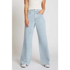 AMO Frida in Beloved. Size 29. Features high rise, wide leg, front button closure with zipper fly, raw frayed hem, 5 pocket style, belt loops, relaxed fit. 100% cotton. Excellent condition, no flaws.