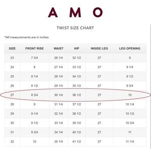 Measurements: Waist = 32” | Inseam = 27” | Front Rise= 8.75” | Back Rise 13 1/2” | Leg Opening = 10 1/2”