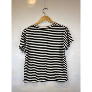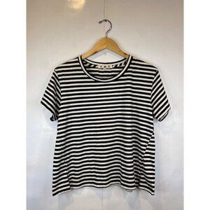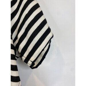 AMO Large Black White Twist Tee Seaton Stripe Distressed Cotton Blend