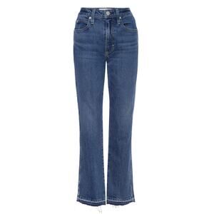 Your go-to high-rise jeans with a slight flare starting at the knee. Fitted through the waist, hips and thighs and cropped at the ankle with a let down hem. Zip fly.