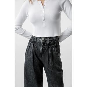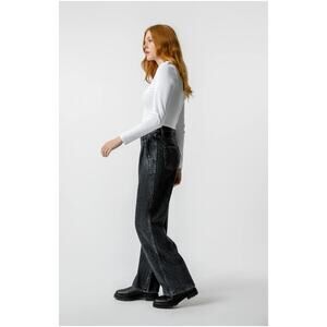 AMO NWT Marcella Pleated Wide Leg Jean in Frosty Black // 31