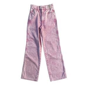 AMO NWT Women's Frida High Rise Peony Pink Denim Wide Leg Jeans 24