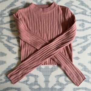 Discover the AMO Pink Ribbed Crew Neck Sweater, crafted with a medium-weight knit that offers a flattering, form-fitting silhouette. The soft, muted pink hue and consistent ribbed texture make it a versatile addition to any wardrobe.