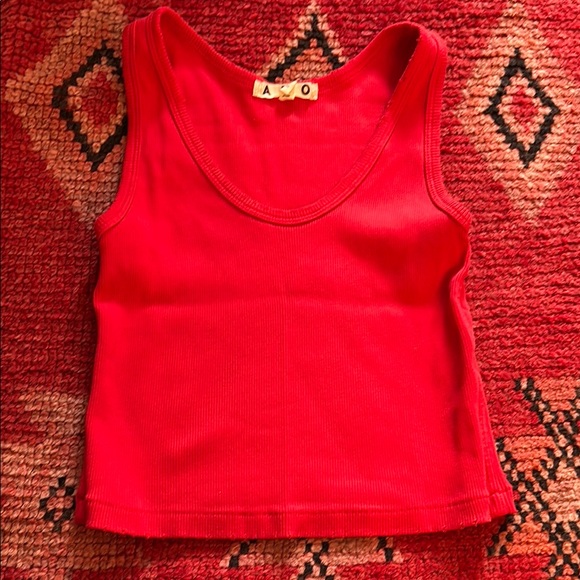 Stylish red ribbed tank top by AMO. Ideal for casual outings.