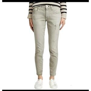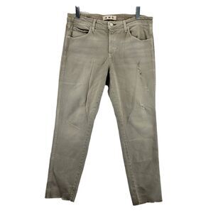 AMO Stix Crop Distressed Straight Leg Cropped Jeans Size 32 Sage Tan