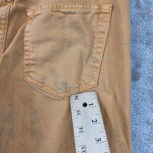 AMO Sylvia Straight Leg Pants Womens 28 Tan High Rise Button Fly Denim Flawed