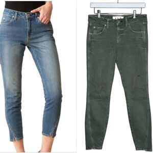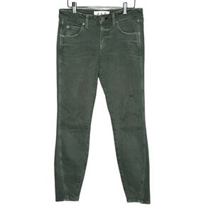 AMO Twist Mid-Rise Ankle Skinny Distressed Crop Jeans Army Green Size 30 OOAK