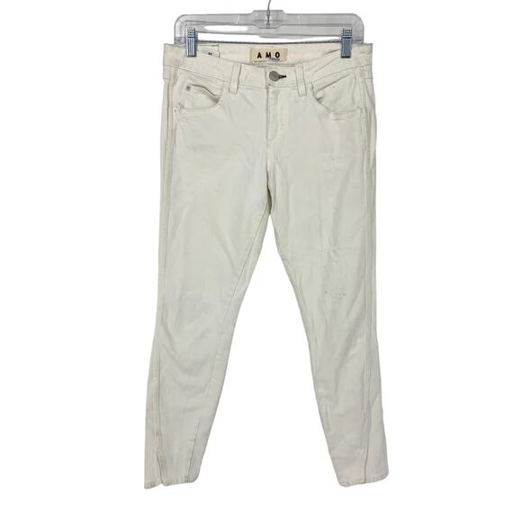 AMO Twist Women's Size 26 Slim Fit Skinny Jeans Mid Rise Sea Salt White *FLAWS