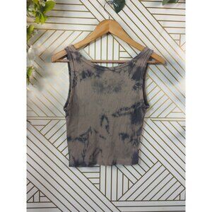 AMO Women's Brown Ribbed Tie Dye Pullover Tank Sleeveless Cropped Size Small