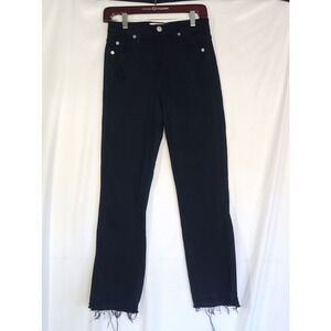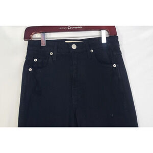 The AMO Women's Designer Bella Black Oak Distressed Ankle Jeans in size 25 are a stylish and versatile addition to any wardrobe. Made from durable cotton denim with a dark wash, these jeans feature a solid black color with a high-rise fit for a flattering silhouette. The distressed detailing adds a trendy touch, while the ankle length and 5-pocket design make them practical for everyday wear. Machine washable and crafted in the United States, these jeans are perfect for the summer, fall, and spring seasons, offering both comfort and style for any occasion.