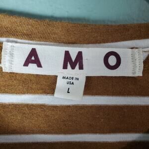 AMO Womens Long Sleeve Babe Tee Sepia Natural Striped Cropped Top Size Large
