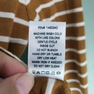 AMO Womens Long Sleeve Babe Tee Striped Cropped Top Size Large in Sepia\Natural