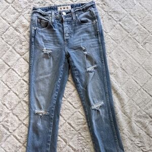 AMO Women's Skinny Jeans 26 Babe Wash Dive Bar Destroy Button Fly.